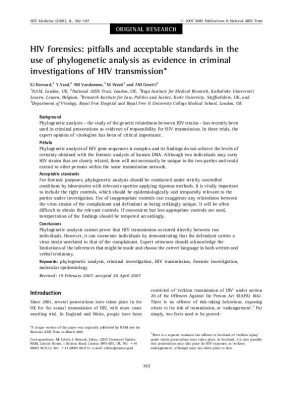 Considers the usefulness of phylogenetic analysis in HIV criminal trials, finding that phylogenetic analysis cannot prove that HIV transmission occurred directly between two individuals. Explains that phylogenetic analysis can exonerate individuals by demonstrating that the defendant carried a virus strain unrelated to that of the complainant.