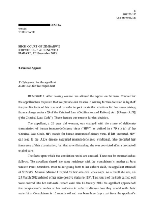 Judge Charles Hungwe’s reasoning that allowed the appeal on behalf of a 26 year old woman, was charged with the crime of deliberate transmission of human immunodeficiency virus (“HIV”) as defined in s 79 (1) (a) of the Criminal Law Code for briefly mistakenly breastfeeding another woman’s baby.